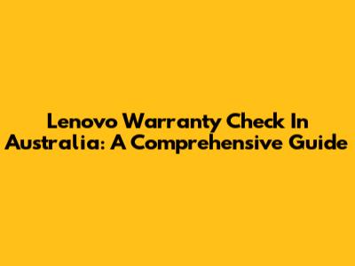 Lenovo Warranty Check In Australia: A Comprehensive Guide