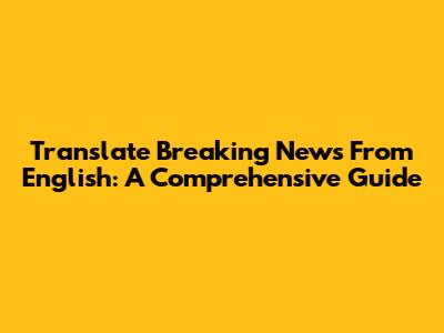 Translate Breaking News From English: A Comprehensive Guide