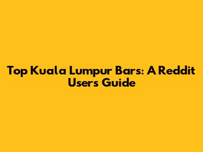 Top Kuala Lumpur Bars: A Reddit User's Guide