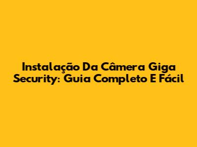 Instalação Da Câmera Giga Security: Guia Completo E Fácil
