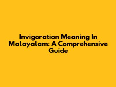 Invigoration Meaning In Malayalam: A Comprehensive Guide