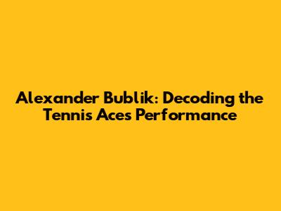 Unveiling Alexander Bublik's Current Rankings