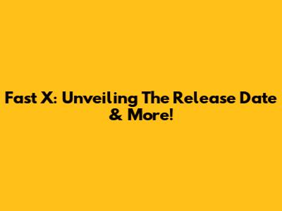 Fast X: Unveiling The Release Date & More!
