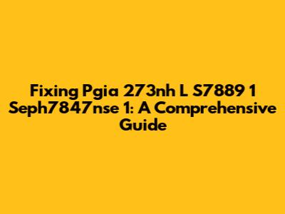 Fixing Pgia 273nh L S7889 1 Seph7847nse 1: A Comprehensive Guide