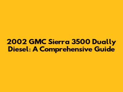 2002 GMC Sierra 3500 Dually Diesel: A Comprehensive Guide