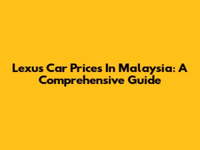 Lexus Car Prices In Malaysia: A Comprehensive Guide