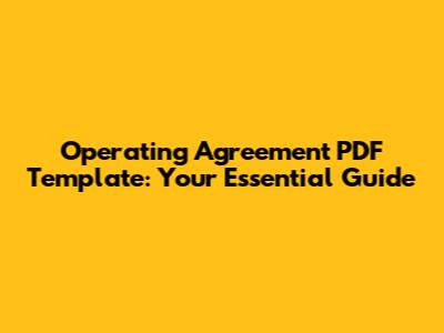 Operating Agreement PDF Template: Your Essential Guide
