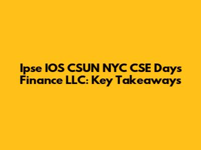 Ipse IOS CSUN NYC CSE Days Finance LLC: Key Takeaways