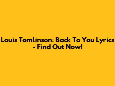 Louis Tomlinson: Back To You Lyrics - Find Out Now!