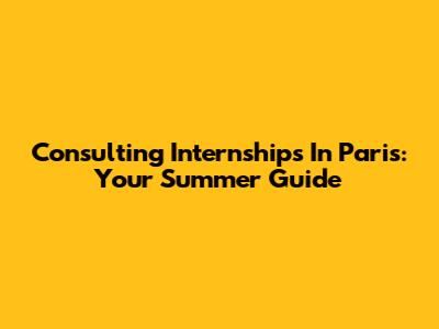 Consulting Internships In Paris: Your Summer Guide