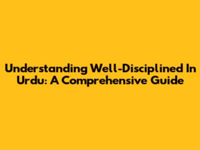 Understanding 'Well-Disciplined' In Urdu: A Comprehensive Guide
