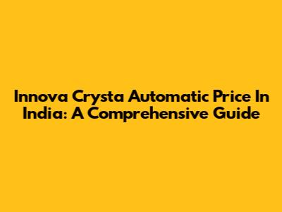 Innova Crysta Automatic Price In India: A Comprehensive Guide