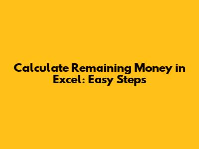 Microsoft Excel is a powerful tool for managing finances, and one of its most useful applications is tracking income and expenses to calculate your remaining balance. Whether you're managing a personal budget, tracking project expenses, or overseeing a small business's finances, knowing how to effectively use Excel for these calculations can save you time and prevent errors. In this article, we'll walk you through the step-by-step process of calculating your remaining money in Excel, complete with examples and tips to optimize your spreadsheets.