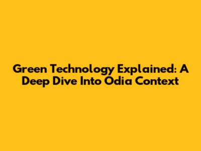 Green Technology Explained: A Deep Dive Into Odia Context