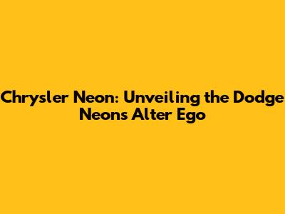 Understanding the Chrysler Neon and Its Dodge Connection