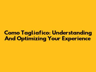Como Tagliafico: Understanding And Optimizing Your Experience