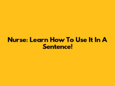 Nurse: Learn How To Use It In A Sentence!