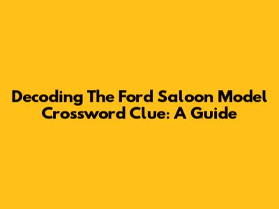 Decoding The Ford Saloon Model Crossword Clue: A Guide