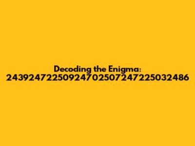 Let's dive deep into the mysterious realm of 24392472250924702507247225032486. What exactly is this sequence, and why should you care? Well, whether it's a code, a date, or some other significant identifier, understanding it could unlock hidden insights. In this article, we’re going to break down the possibilities, explore potential meanings, and give you a comprehensive look at how to approach such enigmatic strings. Think of this as your guide to cracking the code! We'll start with the basics, considering the number's structure and any apparent patterns. From there, we'll venture into different interpretive frameworks. Maybe it's related to a specific historical event, a mathematical formula, or even a unique identifier within a particular system. Our aim is to provide you with the tools and perspectives needed to make sense of it all. We'll explore potential ciphers, common numerical sequences, and even delve into the psychology of pattern recognition to see if that gives us any leads. And, hey, who knows? Maybe by the end of this article, we'll have collectively solved the mystery. So, buckle up, grab your metaphorical magnifying glass, and let's get started on this exciting journey of decipherment!
