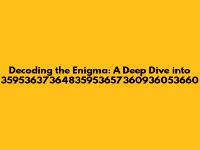 Hey guys, let's dive into something super intriguing today: the world of 35953637364835953657360936053660. Okay, I know, it looks like a bunch of random numbers jumbled together, but trust me, there's a story here. This article is all about unraveling the mysteries hidden within this numerical sequence. We're going to explore what it could mean, what it might represent, and how it could potentially be used. Buckle up, because we're about to go on a digital adventure! First off, what exactly is this number? Without any context, it's just a long string of digits. But in the vast digital landscape, it's possible this sequence holds a unique significance. It could be anything from a product code to a geographical location or even a secret identifier. Maybe it is the key to unlocking a hidden treasure. The possibilities are endless, and that's what makes this so exciting. One of the initial things to think about is what field this number might be related to. Could it be linked to technology, finance, scientific research, or even something completely different? Understanding the possible context can narrow our focus and help us find clues. Let's not forget the possibility that this number may be a part of a larger system. Often, complex data is not expressed in isolation; it is usually part of a structured dataset. We have to consider whether this sequence is related to any existing database or any proprietary algorithm. The world is filled with secret codes and data, and we may have stumbled across one of them. The goal is to piece together every small detail, to start looking for patterns, anomalies, or any distinctive features. This will provide us with an idea and make it easier for us to break down the mystery.