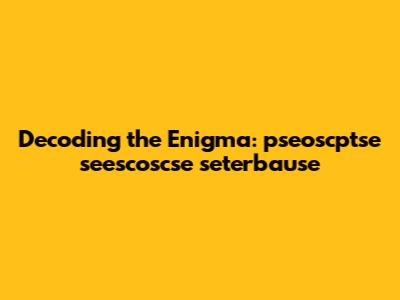 Another area to consider is the possibility of a game or puzzle context. Many games and puzzles involve codes, ciphers, and hidden messages. It's conceivable that "pseoscptse seescoscse seterbause" is part of a larger puzzle or game. If this is the case, solving the puzzle might require a specific set of steps or knowledge. We could search online forums or communities that are dedicated to puzzles and games to see if anyone has encountered this string before. We could also try different puzzle-solving techniques to see if we can uncover any hidden meanings.