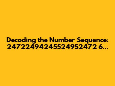 Let's dive into the fascinating world of number sequences, specifically focusing on the enigmatic sequence 24722494245524952472 6 157 2474248025092476. At first glance, it might seem like a random jumble of digits, but trust me, there's often more than meets the eye when it comes to numbers. Our mission today is to break down this sequence, explore potential patterns, and maybe even uncover some hidden meaning. So, buckle up, number enthusiasts, because we're about to embark on a numerical adventure!