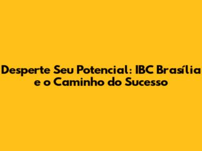 Desperte Seu Potencial: IBC Brasília E O Caminho Do Sucesso
