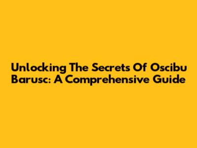 Unlocking The Secrets Of Oscibu Barusc: A Comprehensive Guide