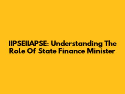 IIPSEIIAPSE: Understanding The Role Of State Finance Minister