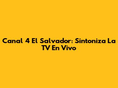 Canal 4 El Salvador: Sintoniza La TV En Vivo