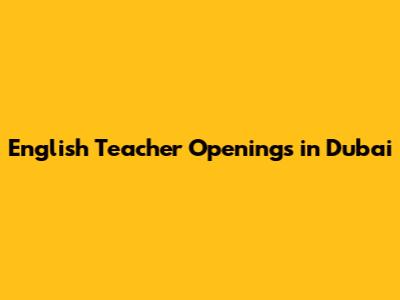 English Teacher Openings In Dubai