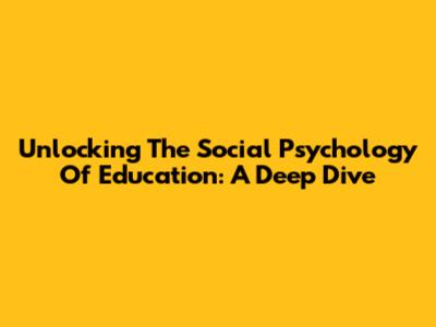 Unlocking The Social Psychology Of Education: A Deep Dive