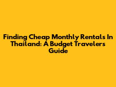 Finding Cheap Monthly Rentals In Thailand: A Budget Traveler's Guide