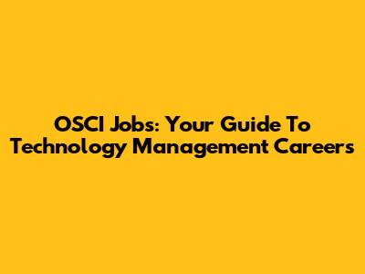 OSCI Jobs: Your Guide To Technology Management Careers
