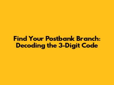 Navigating the world of banking can sometimes feel like cracking a secret code, especially when you're dealing with branch numbers and specific codes. If you're trying to locate your Postbank branch using a 3-digit code, you've come to the right place. In this article, we'll break down everything you need to know about these codes and how to use them effectively. We'll cover what these numbers mean, where to find them, and how they help you manage your banking needs efficiently. So, let's dive in and demystify the 3-digit branch number for Postbank!