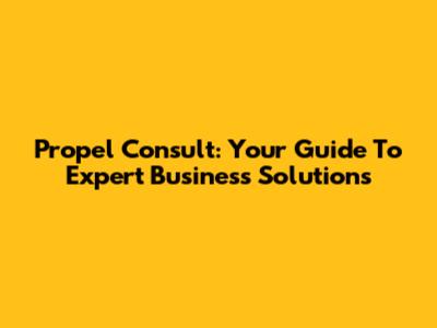 Propel Consult: Your Guide To Expert Business Solutions