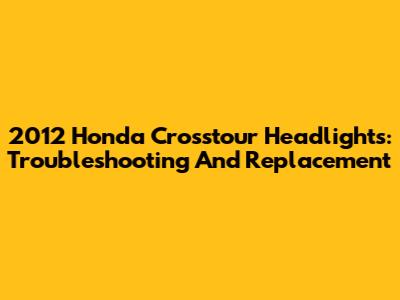 2012 Honda Crosstour Headlights: Troubleshooting And Replacement