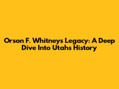 Orson F. Whitney's Legacy: A Deep Dive Into Utah's History