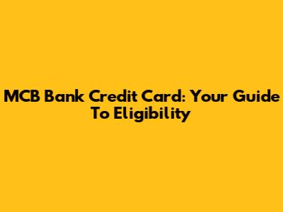 MCB Bank Credit Card: Your Guide To Eligibility