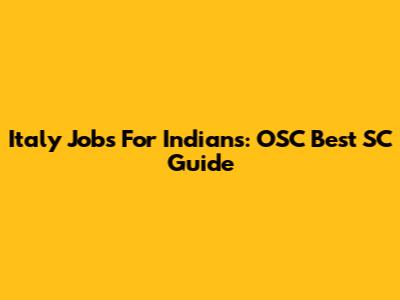 Italy Jobs For Indians: OSC Best SC Guide