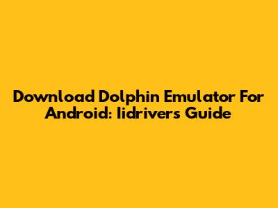 Download Dolphin Emulator For Android: Iidrivers Guide