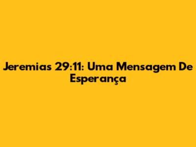Jeremias 29:11: Uma Mensagem De Esperança