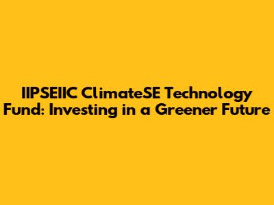 Hey guys! Ever heard of the IIPSEIIC ClimateSE Technology Fund? If you're passionate about tech and saving the planet, this might just be your new favorite thing. Let's dive into what this fund is all about and why it's making waves in the world of sustainable investing. This article should give you a solid understanding of the fund, its objectives, and why it matters in the grand scheme of things.