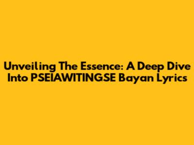 Unveiling The Essence: A Deep Dive Into PSEIAWITINGSE Bayan Lyrics