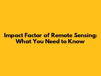Why Impact Factor Matters in Remote Sensing