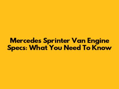 Mercedes Sprinter Van Engine Specs: What You Need To Know