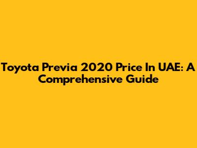 Toyota Previa 2020 Price In UAE: A Comprehensive Guide