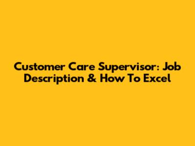 Customer Care Supervisor: Job Description & How To Excel