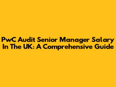 PwC Audit Senior Manager Salary In The UK: A Comprehensive Guide