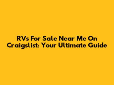 RVs For Sale Near Me On Craigslist: Your Ultimate Guide